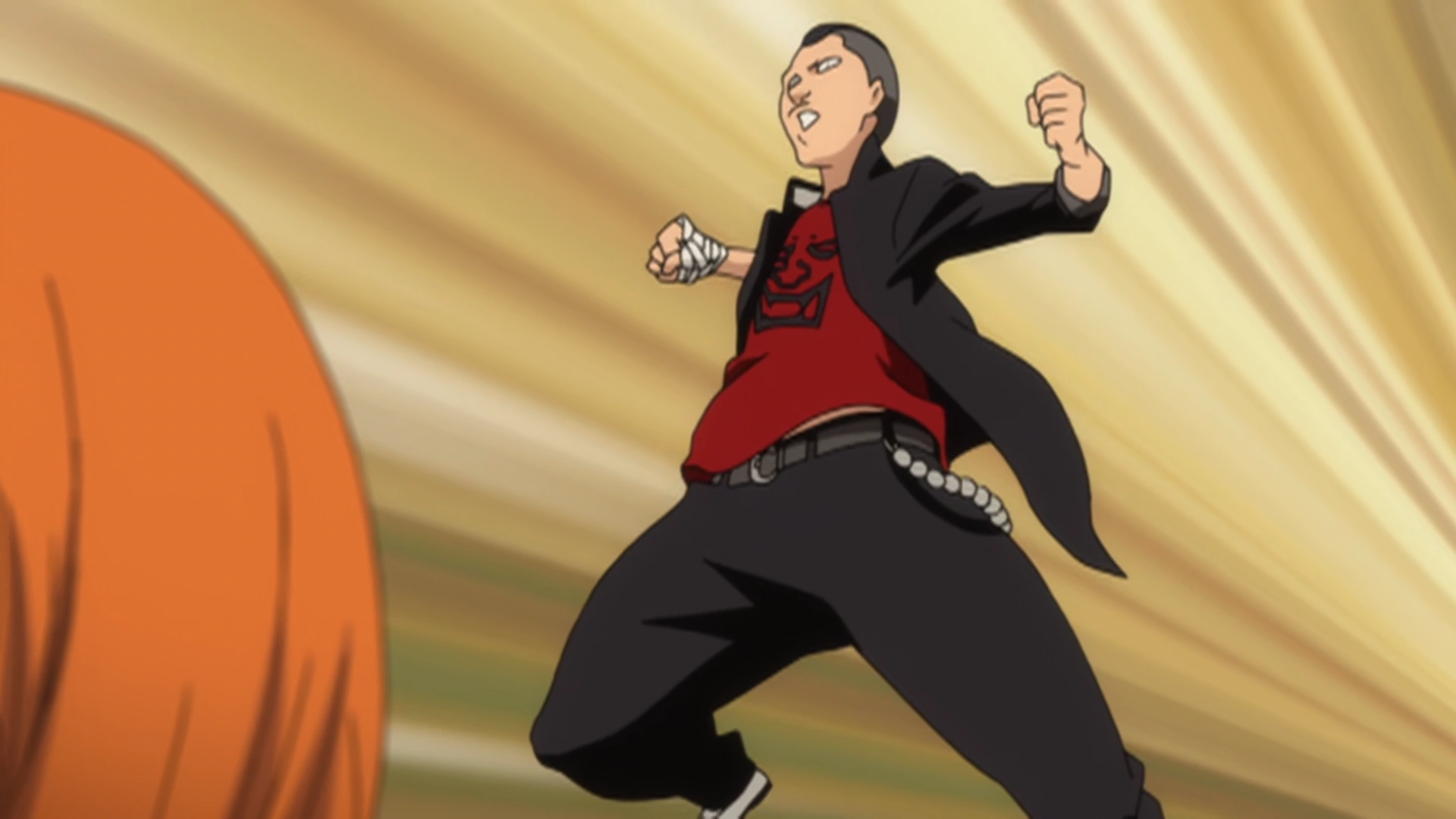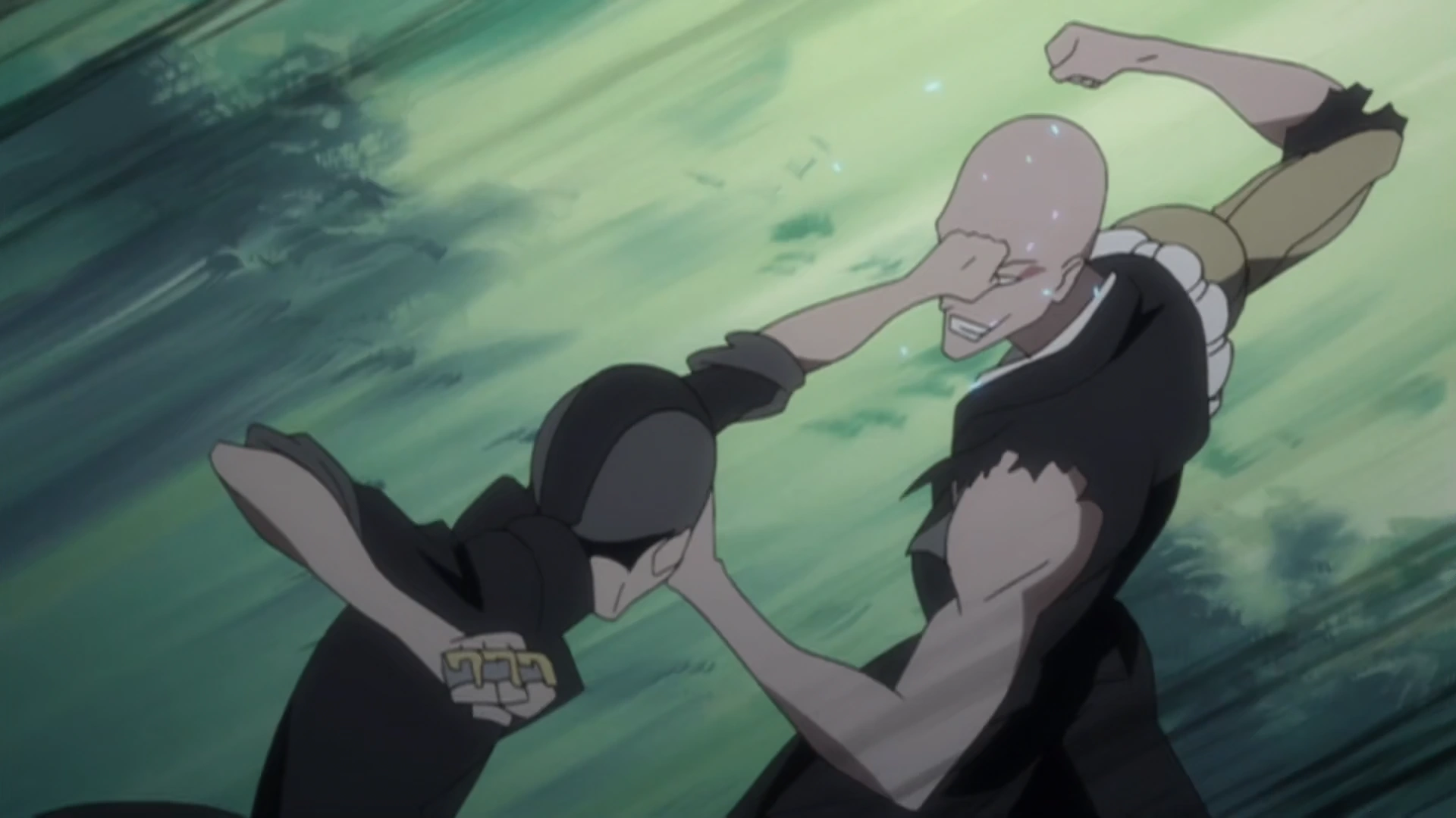 High Endurance: While inexperienced in actual fighting, Moe is quite resilient. He was able to stand against Ikkaku in a fist fight, and even after taking a serious blow to the head from Ikkaku, he was still determined to fight.[23]