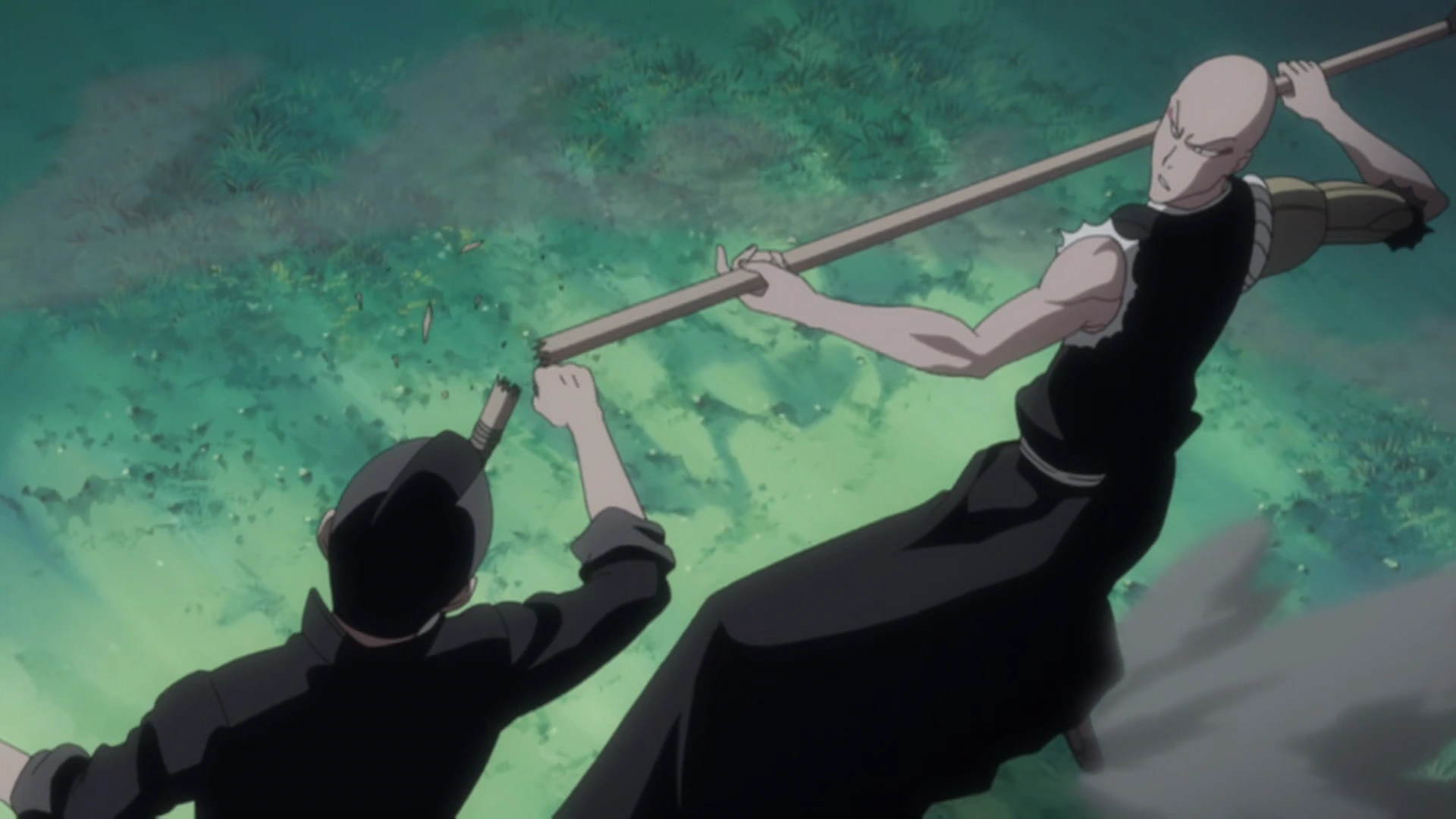 In a fit of rage, Moe begins smashing several targets in his attempt to hit Ikkaku, ultimately demanding Ikkaku to stop "flying", who responds he is merely "standing". After seeing the nature of Moe's Fullbring, Ikkaku says it is boring and decides to face him up-close. In their clash, Moe breaks off the blade of Ikkaku's Shikai, promoting Ikkaku to face Moe barehanded. As the two begin trading and landing blows on each other, Moe notices that his punches are gradually causing less damage with each hit, making him realize that to use his Fullbring on the same target repeatedly must lower his luck. Ultimately, Ikkaku finishes the fight with a powerful headbutt to Moe's skull.[18]