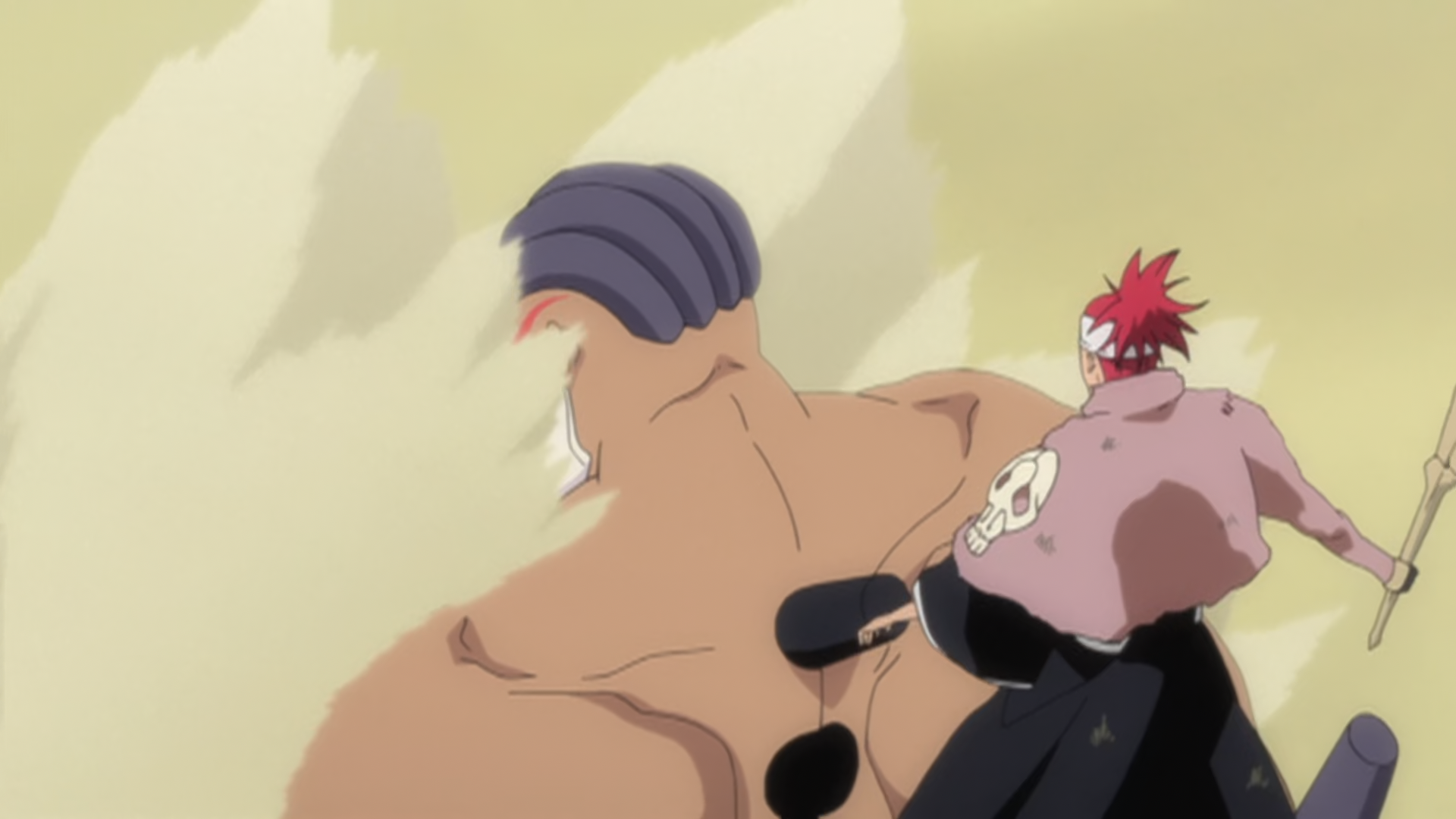 Renji appears behind Yammy to take him by surprise.