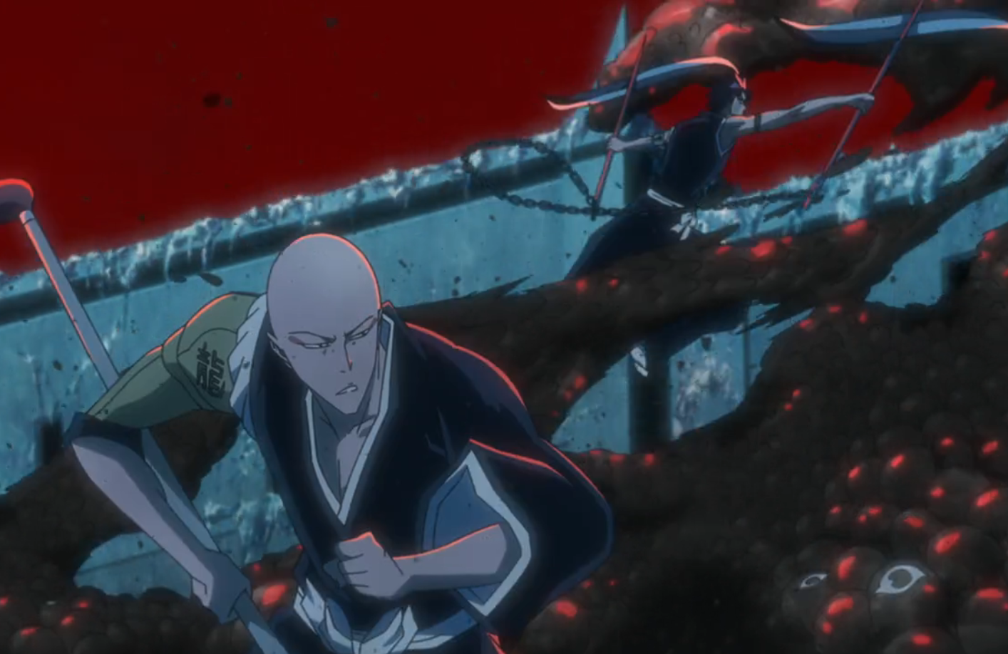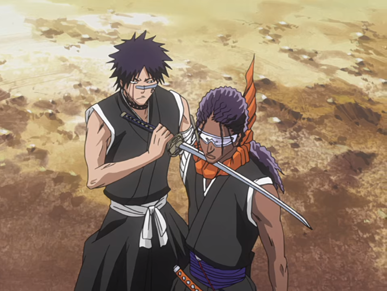 Hisagi fights off the creatures alongside Ikkaku.