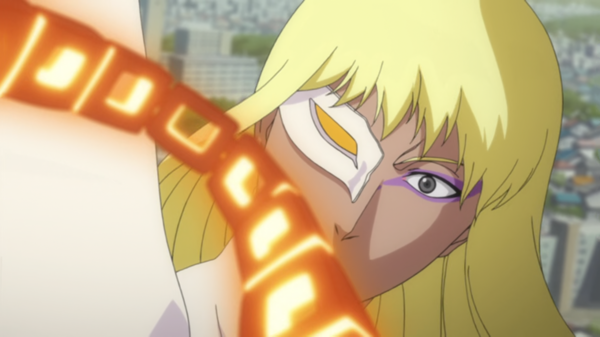 When Mask prepares to leave, Hisagi wraps Kazeshini around his leg in an attempt to stop him, only for Mask to pull him forward before clotheslining him. As Mask attempts to stomp him into the ground, Hisagi is saved by the arrival of Kensei, who criticizes him for having been defeated without displaying the results of his Bankai training.[49] Later, when James begins to beg Mask to not lose, Hisagi tells his captain he must take out James first, only for Mask, now empowered by James' cheers, to appear behind Kensei and punch him into a building.[50] The following day, Hisagi, Renji, Rukia, Byakuya, Ikkaku, and Yumichika confront the Sternritter gathered at Ichigo's location.[51]