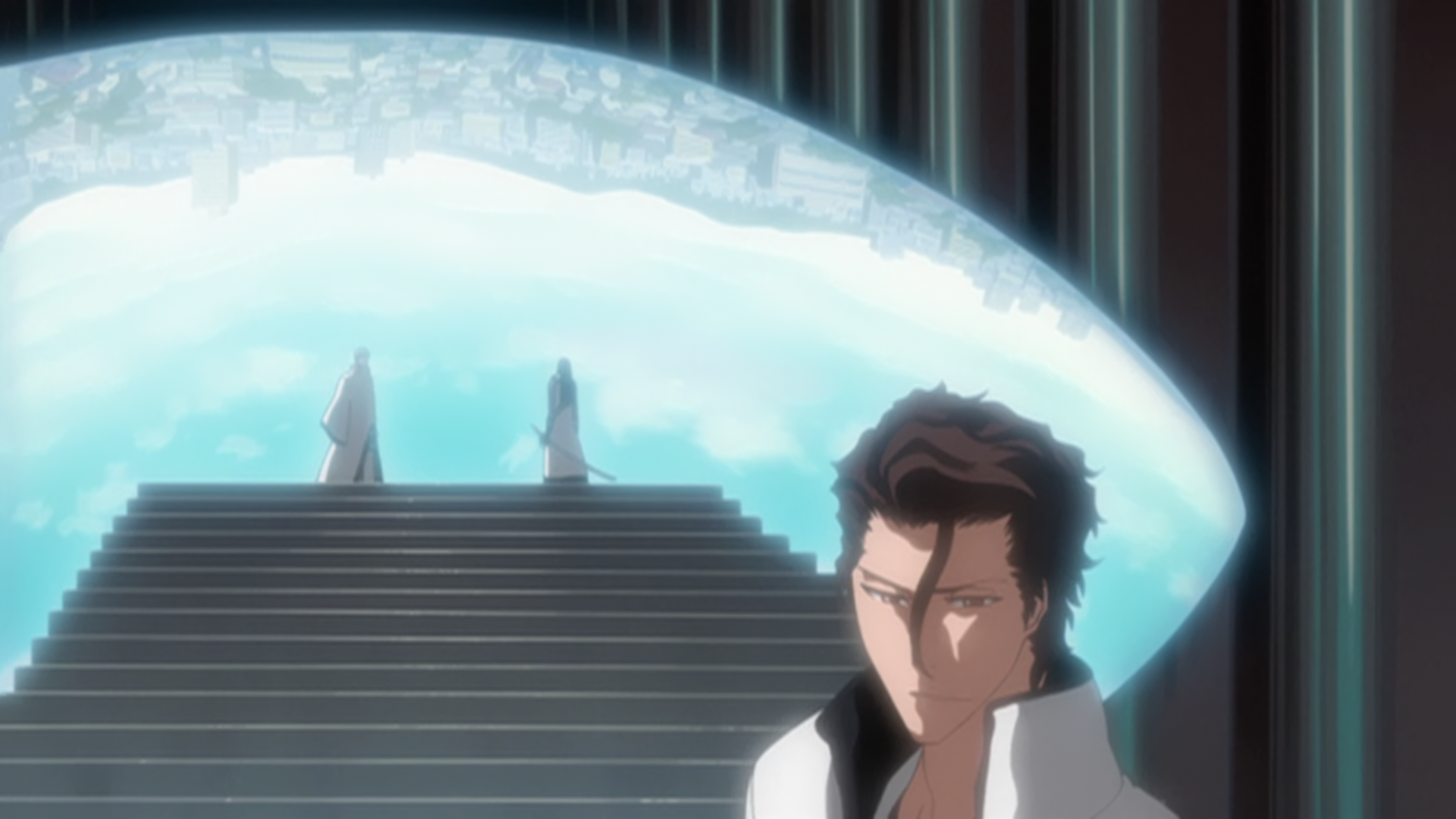 Aizen, Gin, and Tōsen arrive for the Espada meeting.