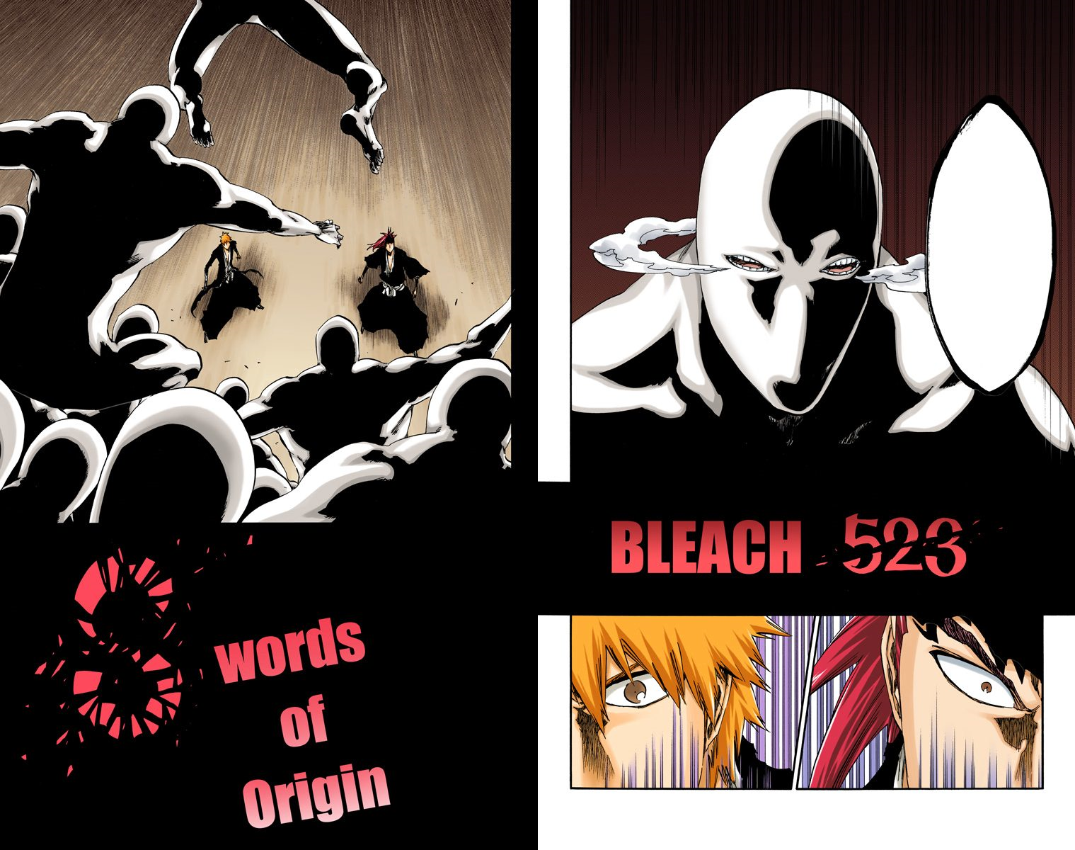 Ichigo Kurosaki and 6th Division Lieutenant Renji Abarai fight for survival against the Asauchi as 4th Division Captain Retsu Unohana begins her duel with 11th Division Captain Kenpachi Zaraki.