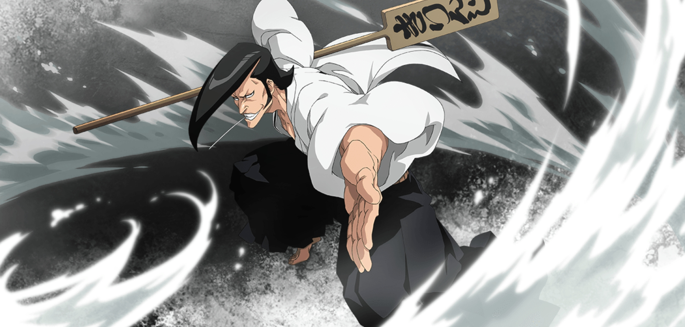 Promotional art of Kirinji wielding his hot spring water in Bleach: Brave Souls.