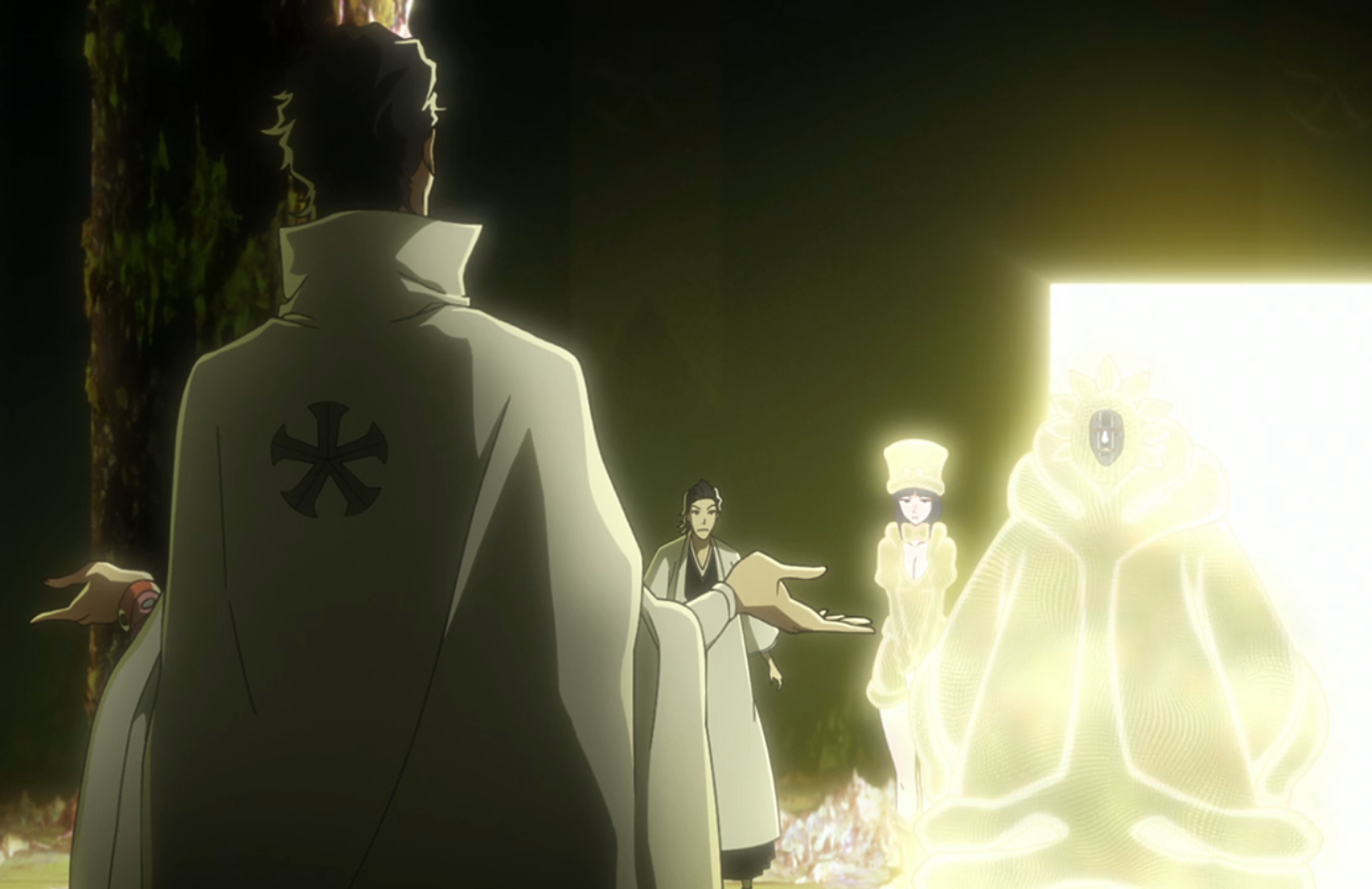 Jugram Haschwalth confronts Shunsui KyĆraku and Nanao Ise in the former First Division barracks.