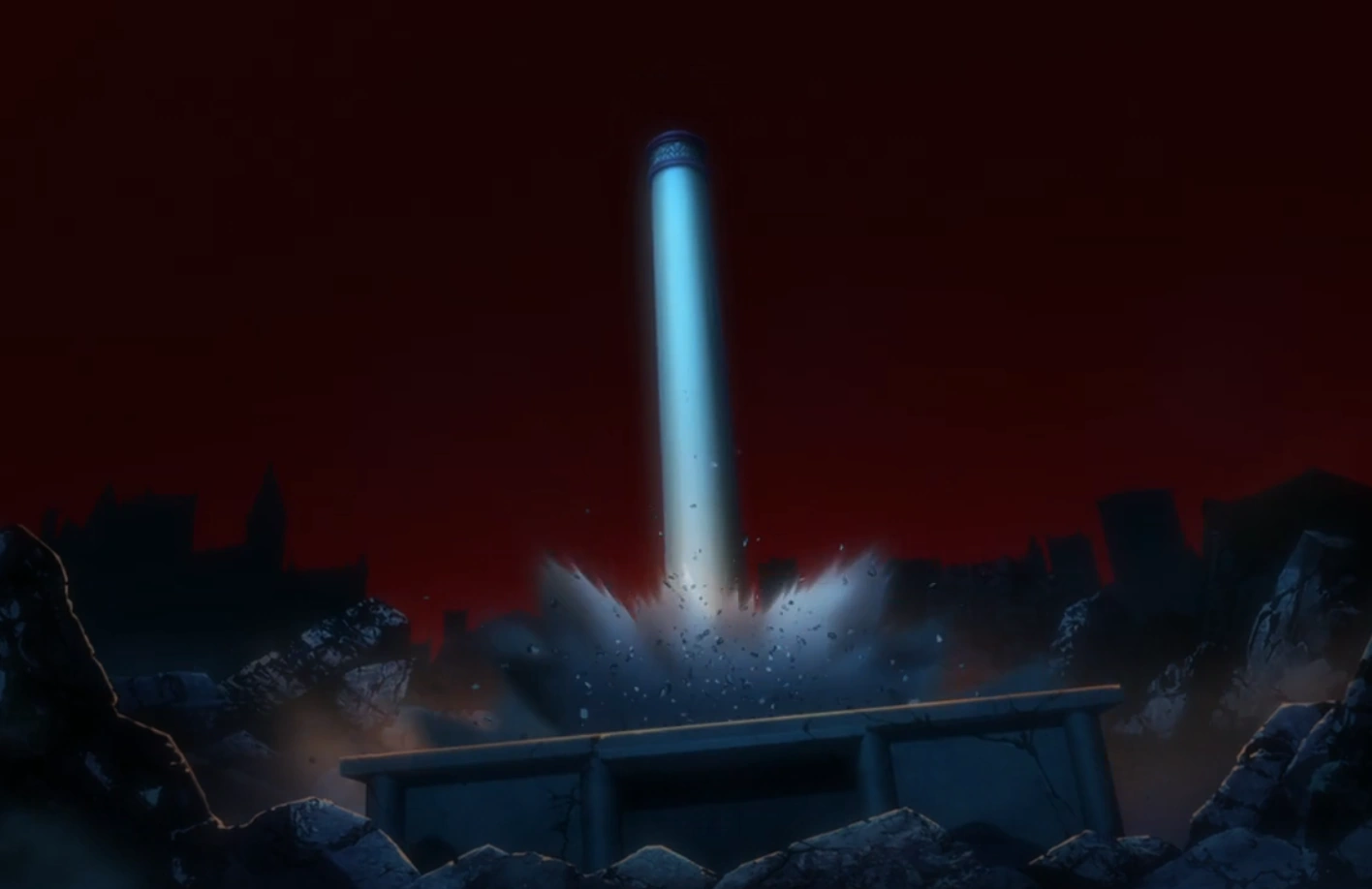 The pillar of light creates a large gap in the clouds before a powerful blast rockets out from the tower and across the surrounding area, and while shielded by Orihime's Santen Kesshun, Ichigo continues screaming Uryƫ's name. In the aftermath, as rain begins to fall across the replaced Seireitei, Orihime sits with Ichigo and Sado under her Santen Kesshun in the rubble, where she assumes that Uryƫ is the one who created the blast and calls him impressive prior to wondering if it was Yhwach who did so instead. However, with Ichigo remaining solemn, Sado hosts him into the air and throws him into the side of a building, prompting an angered Ichigo to question what that was for, only for Sado to ask him what he is doing.[51]