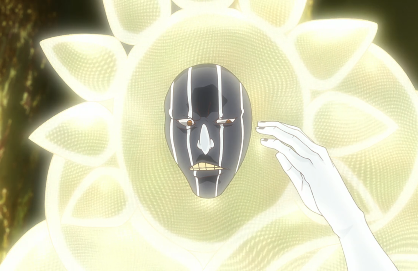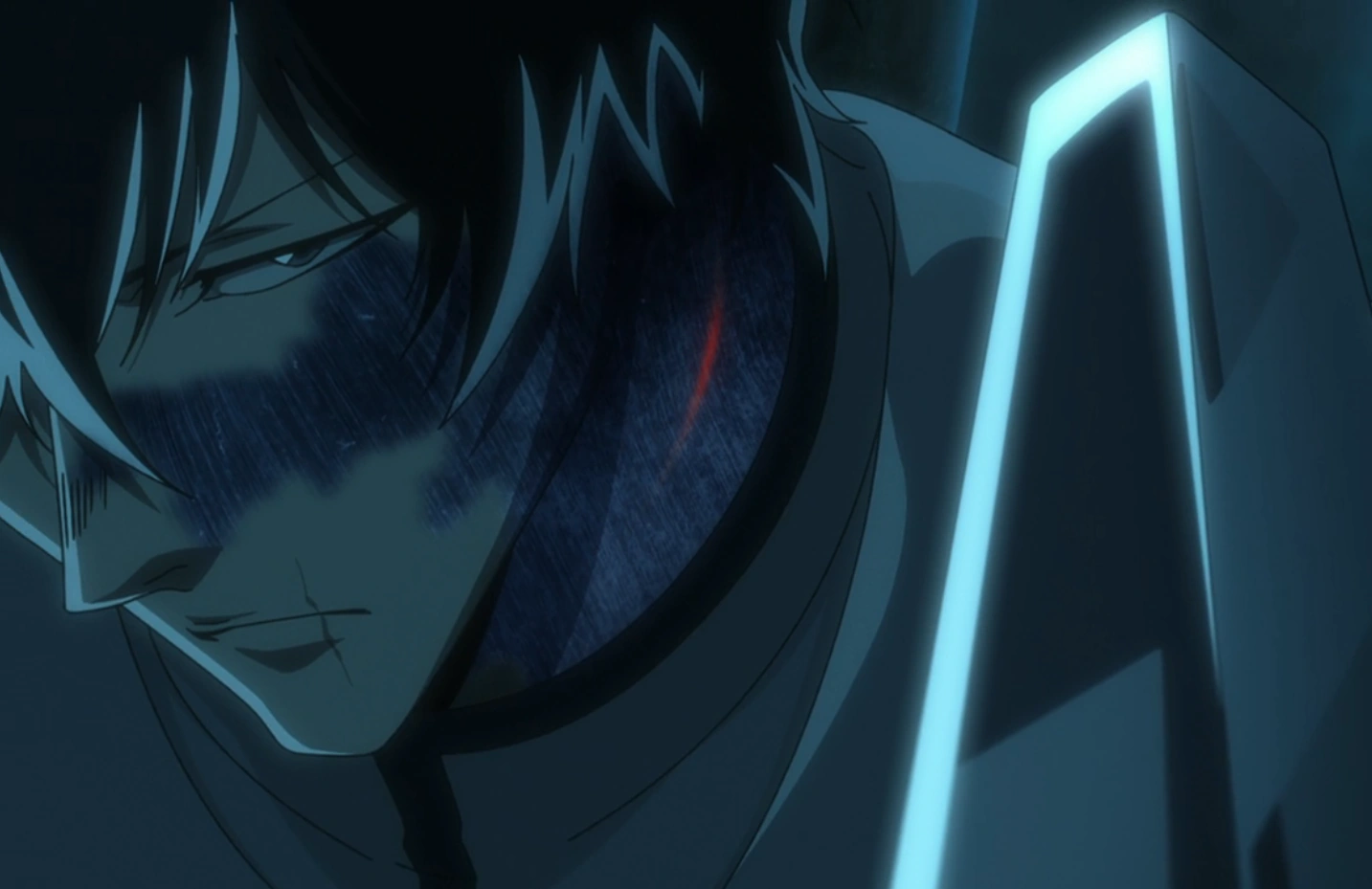 With a doorway appearing in the air behind Askin, Mayuri's face emerges from the light within as he notes that the Quincy operating from within the shadows meant that there were two worlds existing in the same space without ever interacting, which he finds to be absurd. Stepping out of the doorway with both himself and his lieutenant, Nemu Kurotsuchi, clad in garments emitting bright light, Mayuri clarifies that he does not mind absurdity and responds to his subordinates' shock over his attire by explaining that the data he collected from the last invasion let him deduce that the Wandenreich were somehow making use of shadows. Declaring that he simply modified his laboratory to not emit any shadows as a result, Mayuri invites Askin to find out whether his department is intelligent in name only before he leaves, to Askin's irritation.[8]