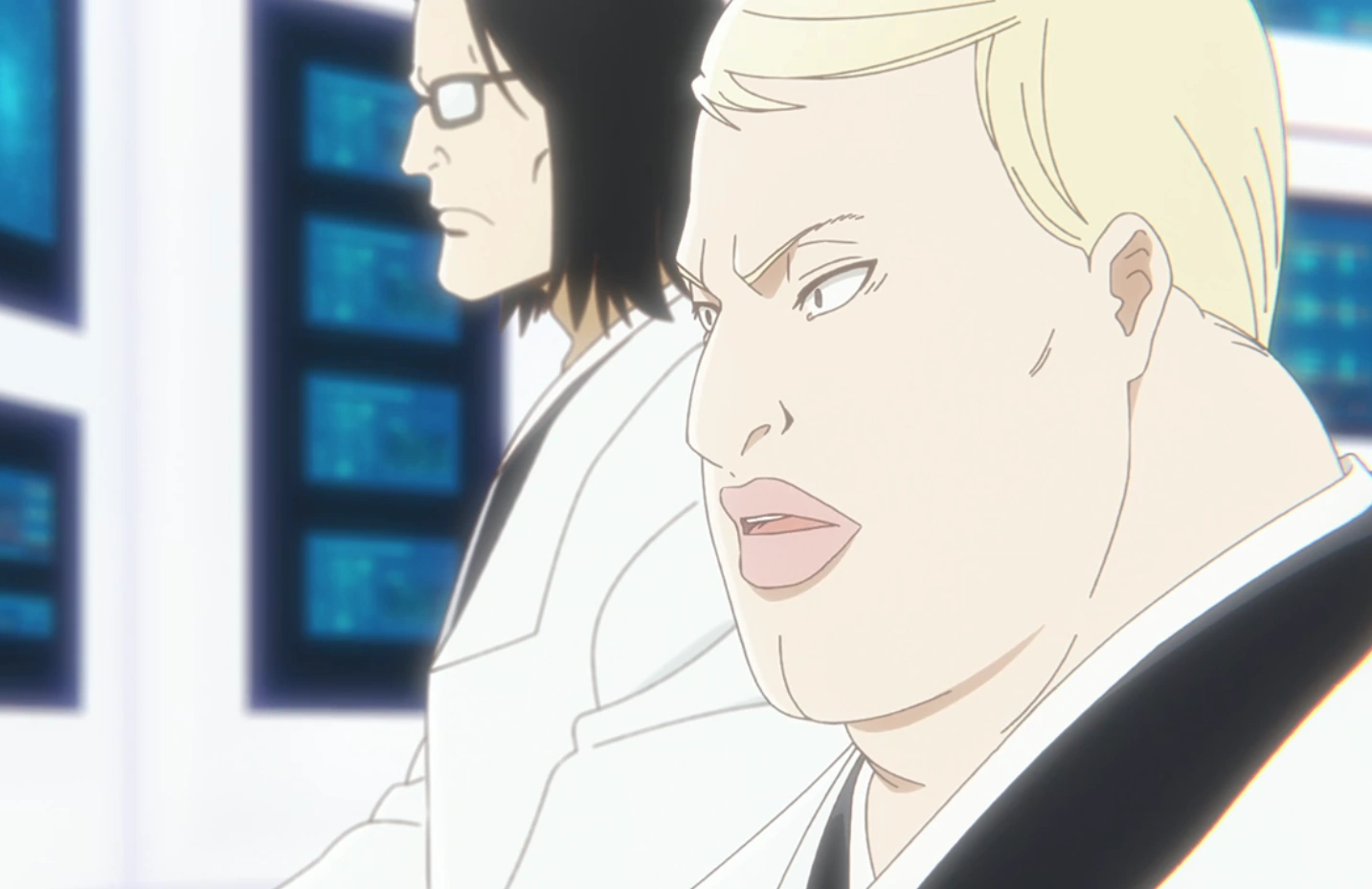 At Akon's behest, the technicians detail that SuĂŹ-FÄng is currently injured and being transported by Marechiyo to the first-aid station following her battle against BG9, 10th Division Captain TĆshirĆ Hitsugaya's Reiatsu has disappeared after his battle against Cang with Lieutenant Rangiku Matsumoto's status remaining unknown, and 11th Division Captain Kenpachi Zaraki is not responding to any of their calls, though Akon bluntly asserts that they can ignore this. In response, one of the technicians reveals that 9th Division Captain Kensei Muguruma and 3rd Division Captain RĆjĆ«rĆ Ćtoribashi are alright.[33]