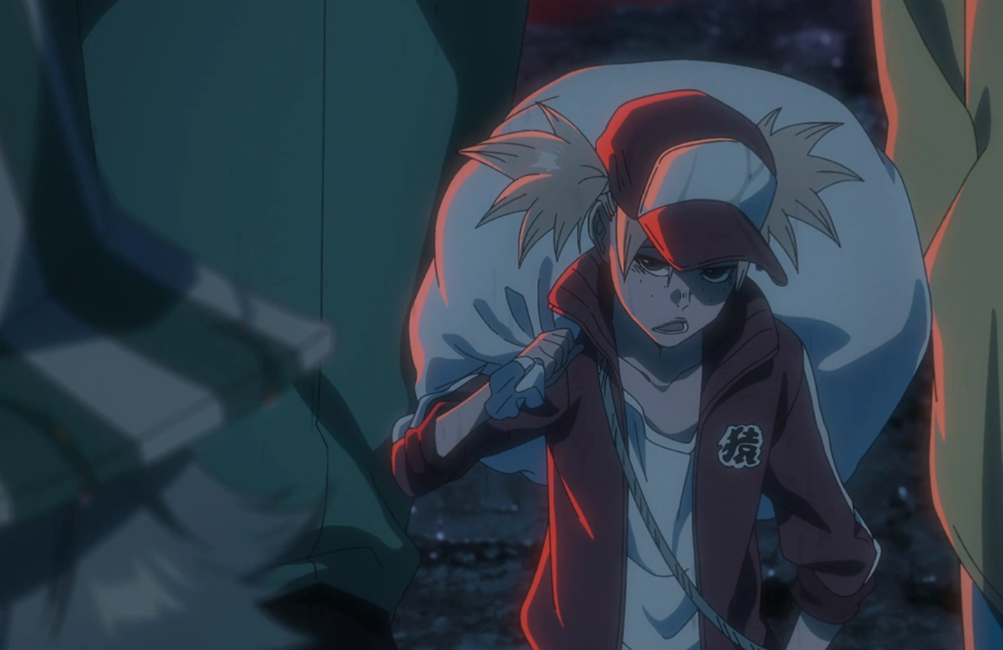 Shinji deduces that Marechiyo can also sense Kenpachi's Reiatsu and that the Sternritter plan to kill the latter while he is weakened because they believe doing so will instantly turn the tide of the war, which he admits is probably correct because the Reiatsu he can feel across the city indicates that there are very few combatants in the Gotei 13 left who can still fight, meaning that Kenpachi dying now will tilt the odds in the Wandenreich's favor. However, with Shinji concluding that they have to stop the Sternritter from killing Kenpachi at any cost, Bazz-B thanks him for this level-headed analysis and stands on a rooftop above them while asserting that the Sternritter cannot let anyone aid Kenpachi. In response to Shinji questioning who he is and if he is here to stop them, a grinning Bazz-B reveals that he already has and uses Burner Finger 3 to melt the side of the building into lava that quickly envelops Shinji and Marechiyo.[44]