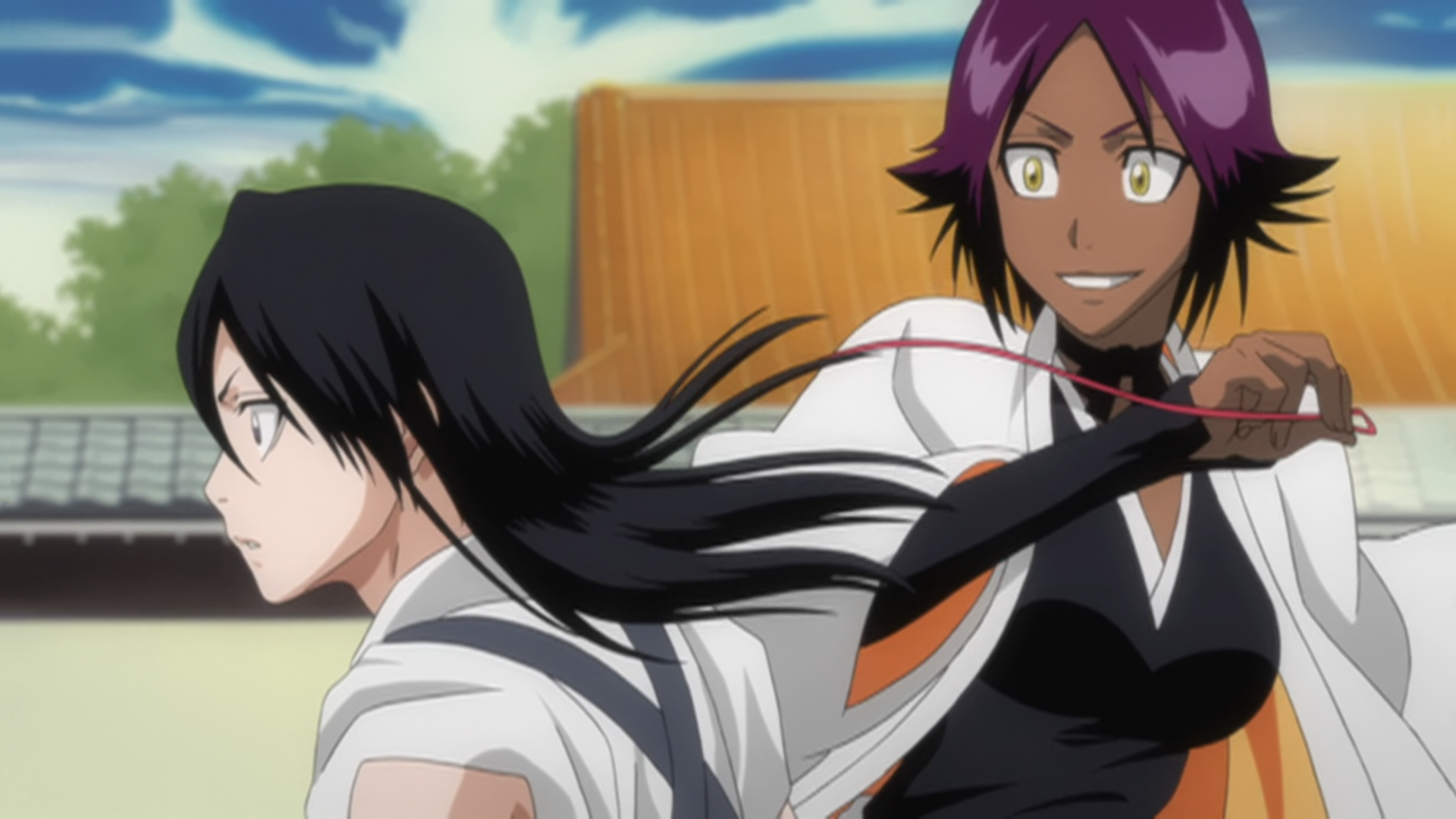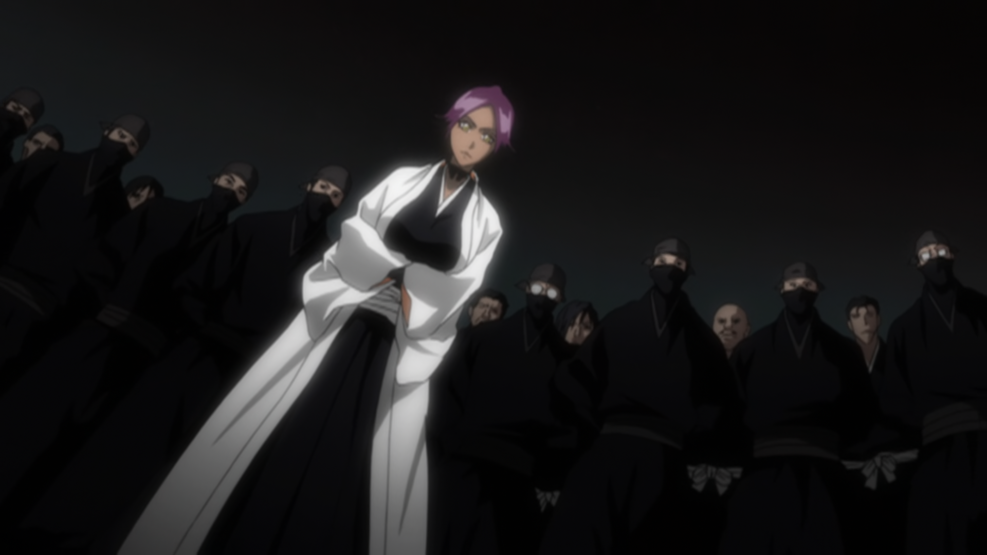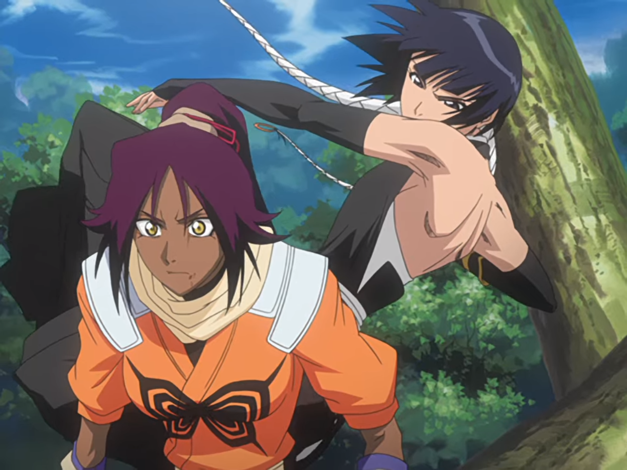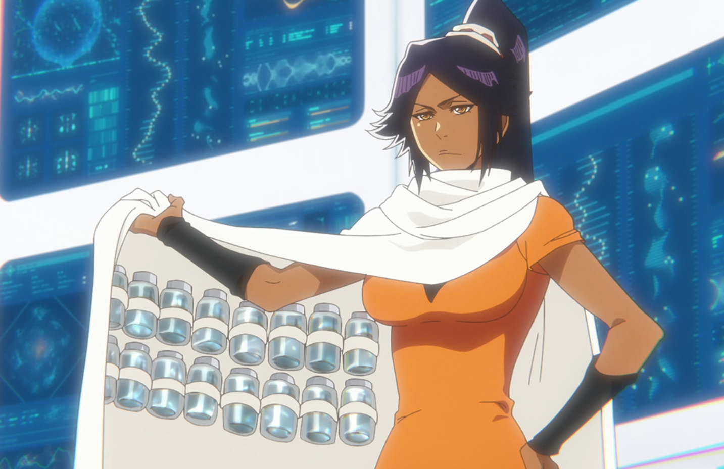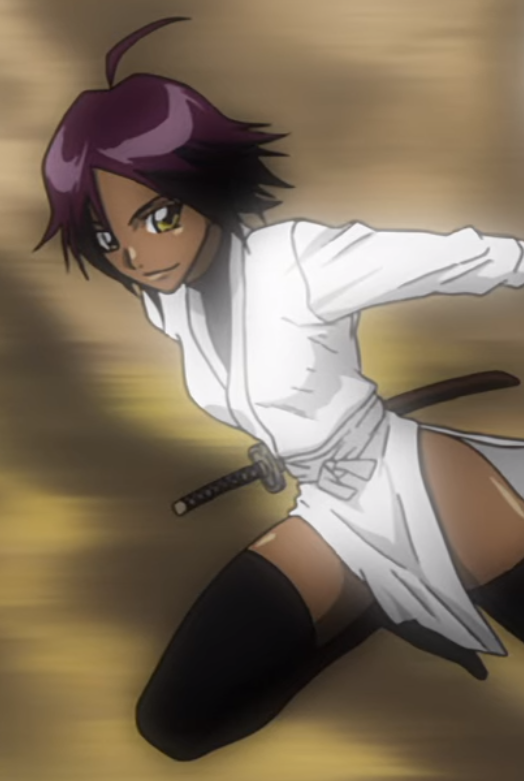 Yoruichi Shihōin (四楓院 夜一, Shihōin Yoruichi) is the former captain of the 2nd Division of the Gotei 13, as well as the former commander of the Onmitsukidō. Her Lieutenant was Marenoshin Ōmaeda. Having abandoned her command of both positions, she works with Kisuke Urahara and Tessai Tsukabishi, based in the Urahara Shop out in the Human World.