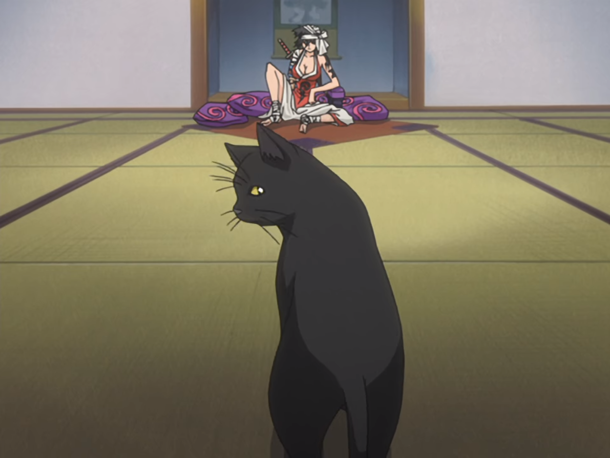 Unlike any other known Shinigami, she can transform into a small black cat for long periods of time. In this form, she has a distinctive male voice and golden eyes.[11]