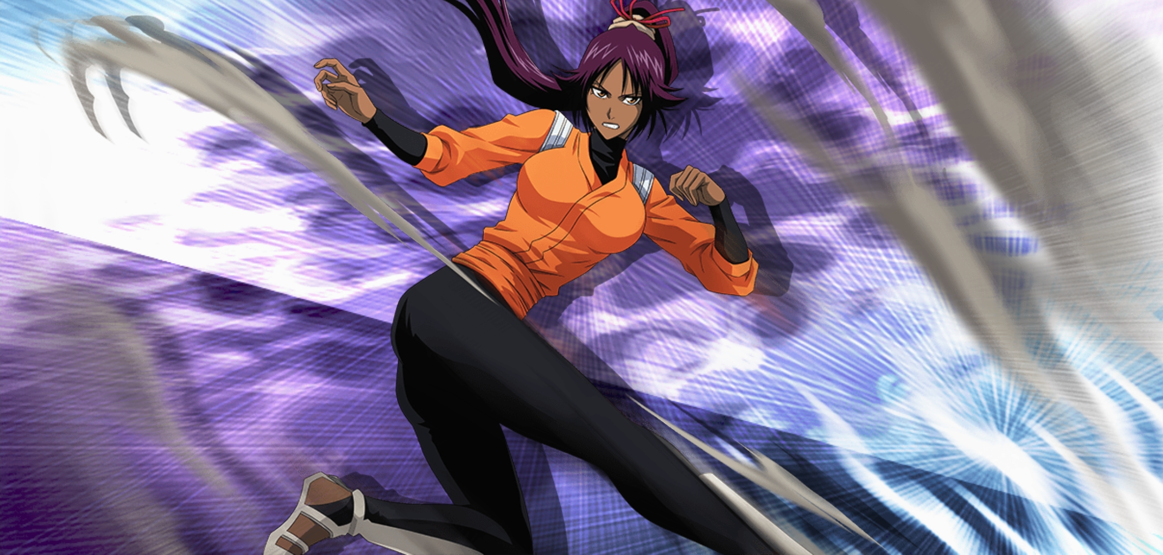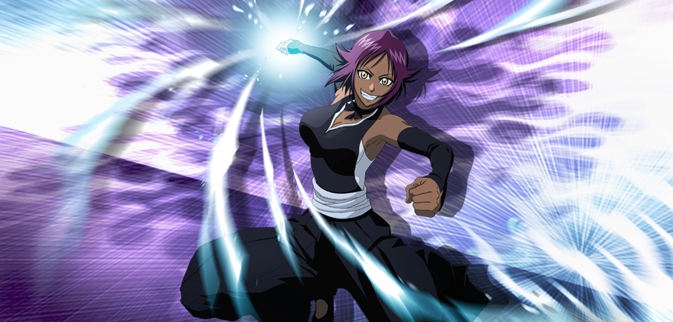 - In Bleach: Brave Souls, various versions of Yoruichi are playable, including one drawing from her appearance during the Thousand Year Blood War arc. In this form, Yoruichi is a melee strong attack character with the "Speed" Attribute and the "Hollow Killer" ability who has a chance to inflict Paralysis with every attack. Her unlockable skills are "Bruiser +20%", "Debilitator +5 secs.", "Devastation +40%", "Frenzy +1", "Long Reach +20%", and "Sprinter +1", while her Soul Trait is "Strong Attack Damage +20%"; meanwhile, her Arena Traits are "Strong Attack Recharge Time -7%" and "Spiritual Pressure +90", while her Arena Abilities other than "All Stats +5%" are "Paralysis Duration -100%" at level 5 and "Strong Attack Damage +30%" at level 10. Yoruichi's special is Shunkō: Raijū Senkei - Shunryū Kokubyō Senki (瞬閧 雷獣戦形『瞬霳黒猫戦姫』, Flash War Cry: Thunder Beast Battle Form: Flash God Black Cat Warrior Princess), where she becomes clad in lightning-like Reiatsu and attacks with incredible speed, inflicting immense damage and Paralysis; after doing so, Yoruichi remains in this form for a brief period of time.