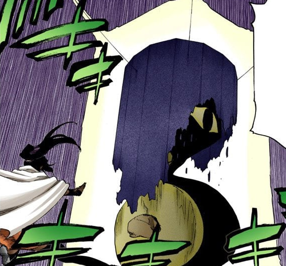Askin blasts Yoruichi with a Gift Ball containing Reishi, oxygen, and nitrogen, causing her to become weakened and struggle to keep herself up. Yoruichi does not know what to make of Askin toying with her, but he replies that he was trying his best to kill her. Yoruichi looks at the fallen Yūshirō, knowing that he could not last much longer in that state but she is too weak to heal him. Suddenly, Askin appears right in front of her, saying that if it took this long for her to react, then she was as good as dead.[109]